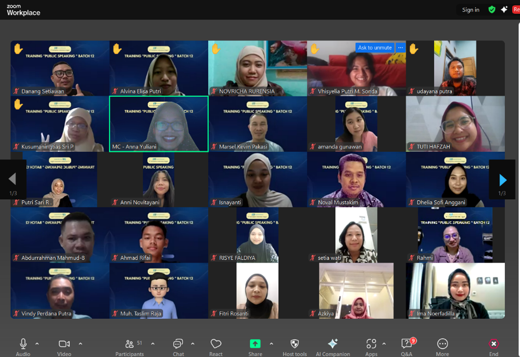 Training Public Speaking membahas pengertian & tujuan public speaking, berbagai styles, cara meningkatkan skill, penggunaan body language & BMTD, teknik membangun kepercayaan diri, handling nervous, hingga praktik langsung public speaking